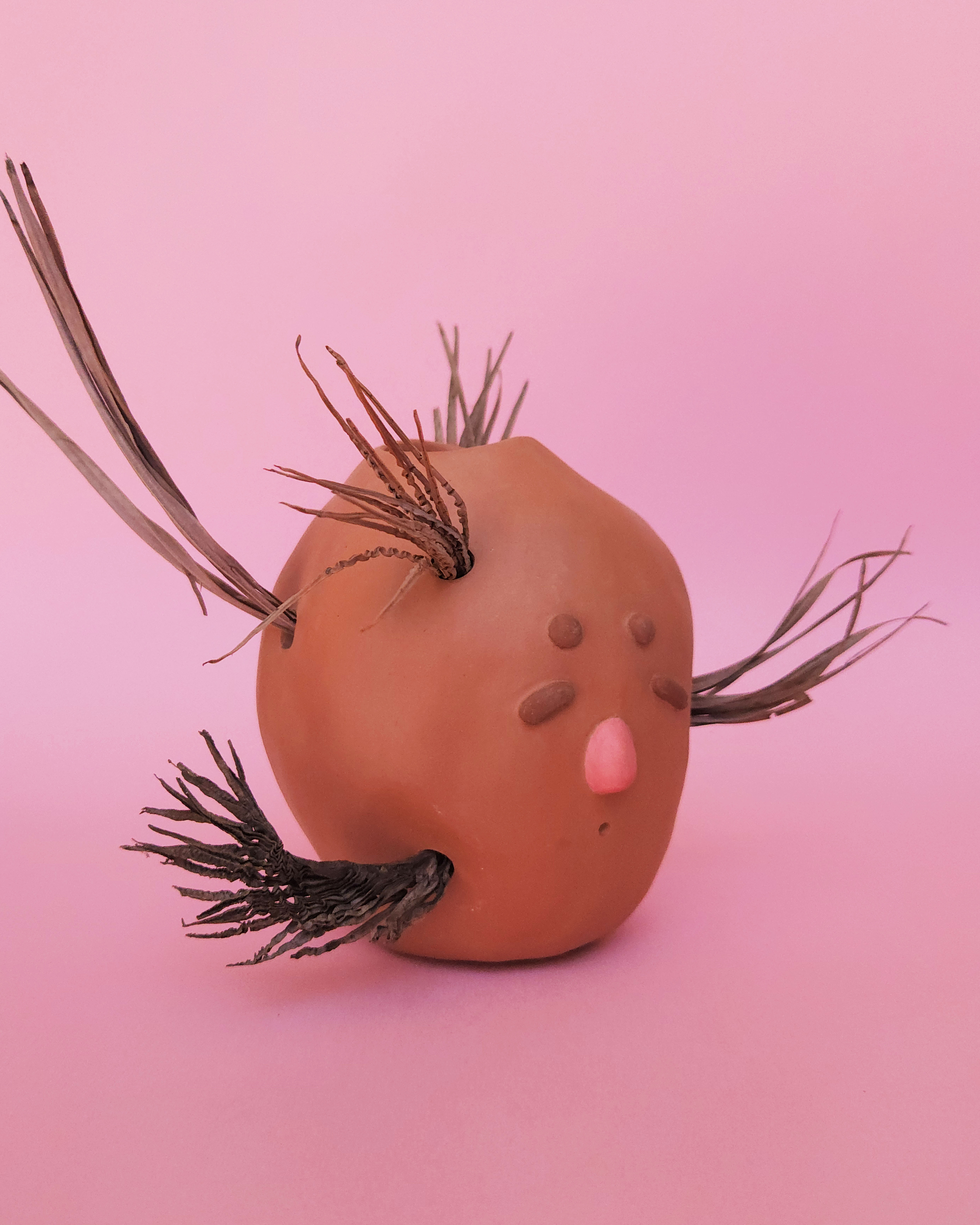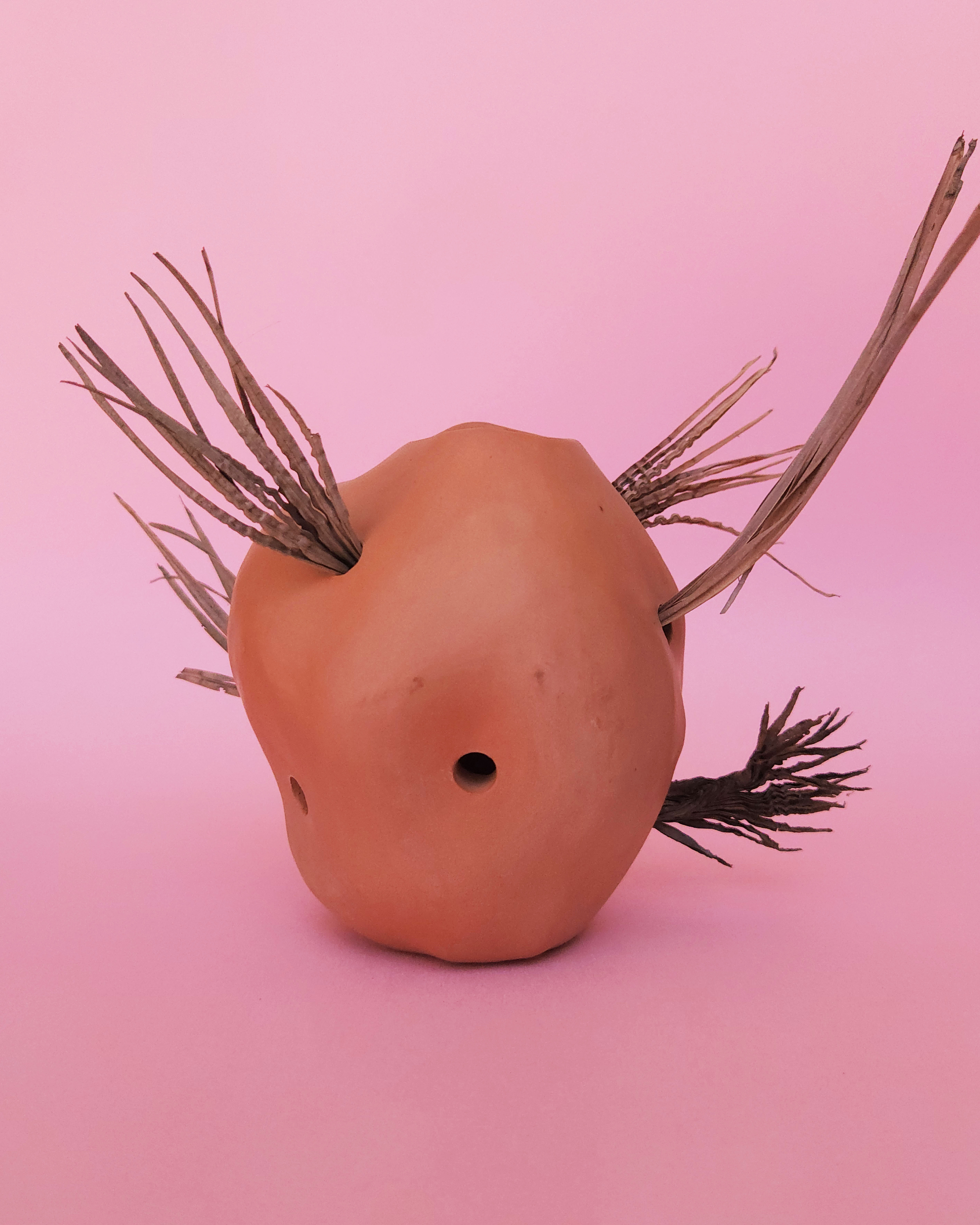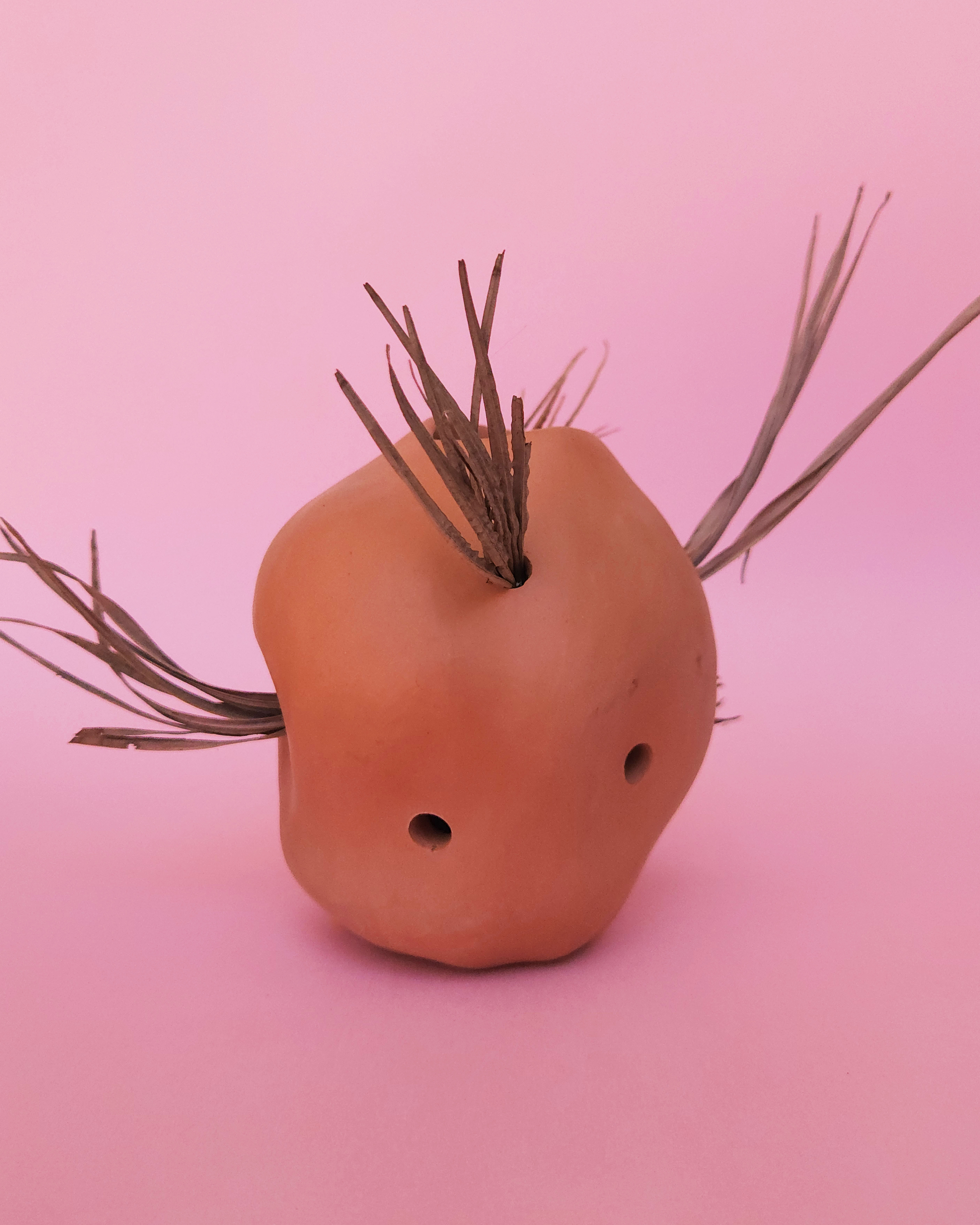 MAPU Handmade ceramic sculpture. Burnished red clay (low-fire) with underglaze. One-off piece. Size: 11 x 9 x 9 cm / 4.5 x 3.5 x 3.5 in
