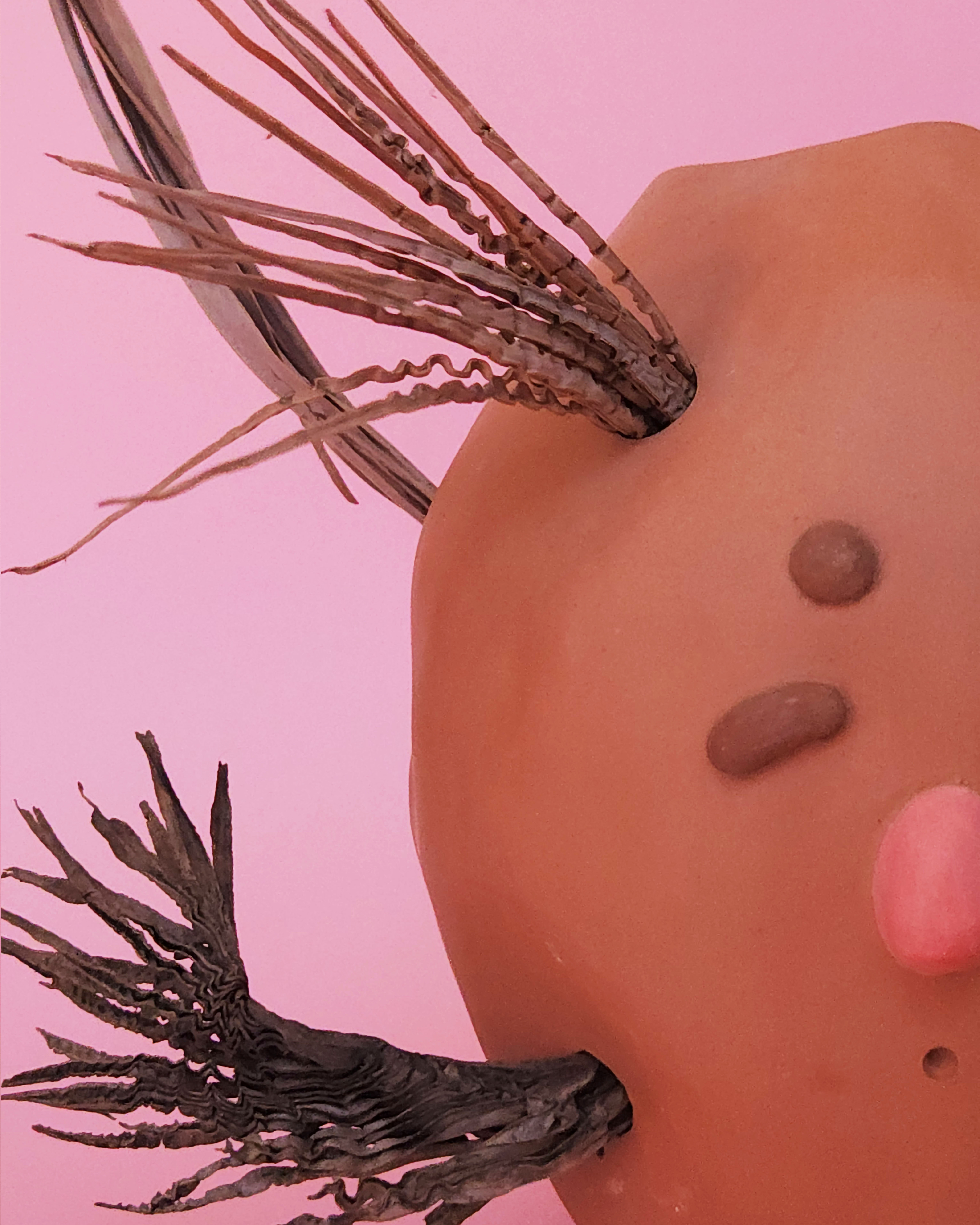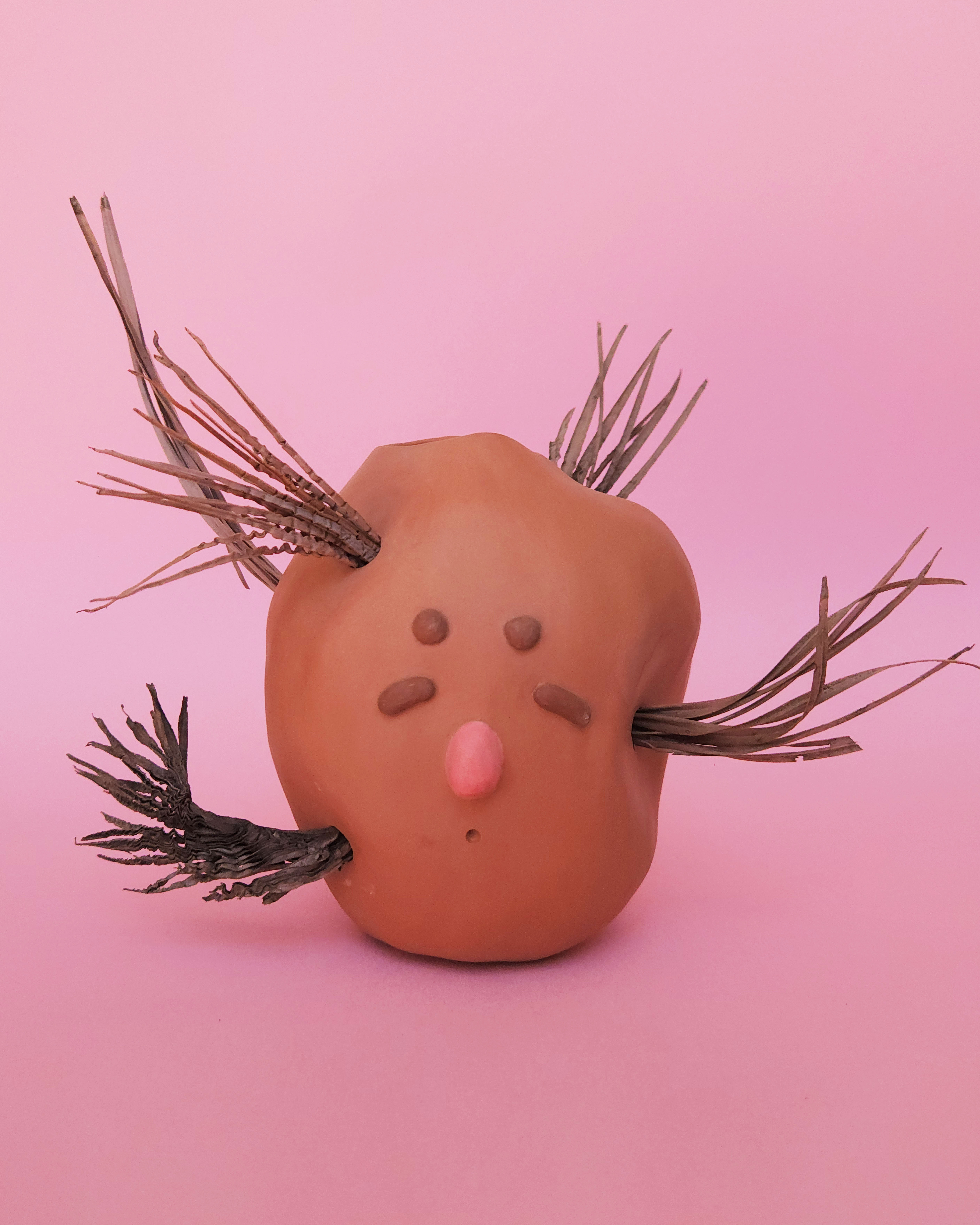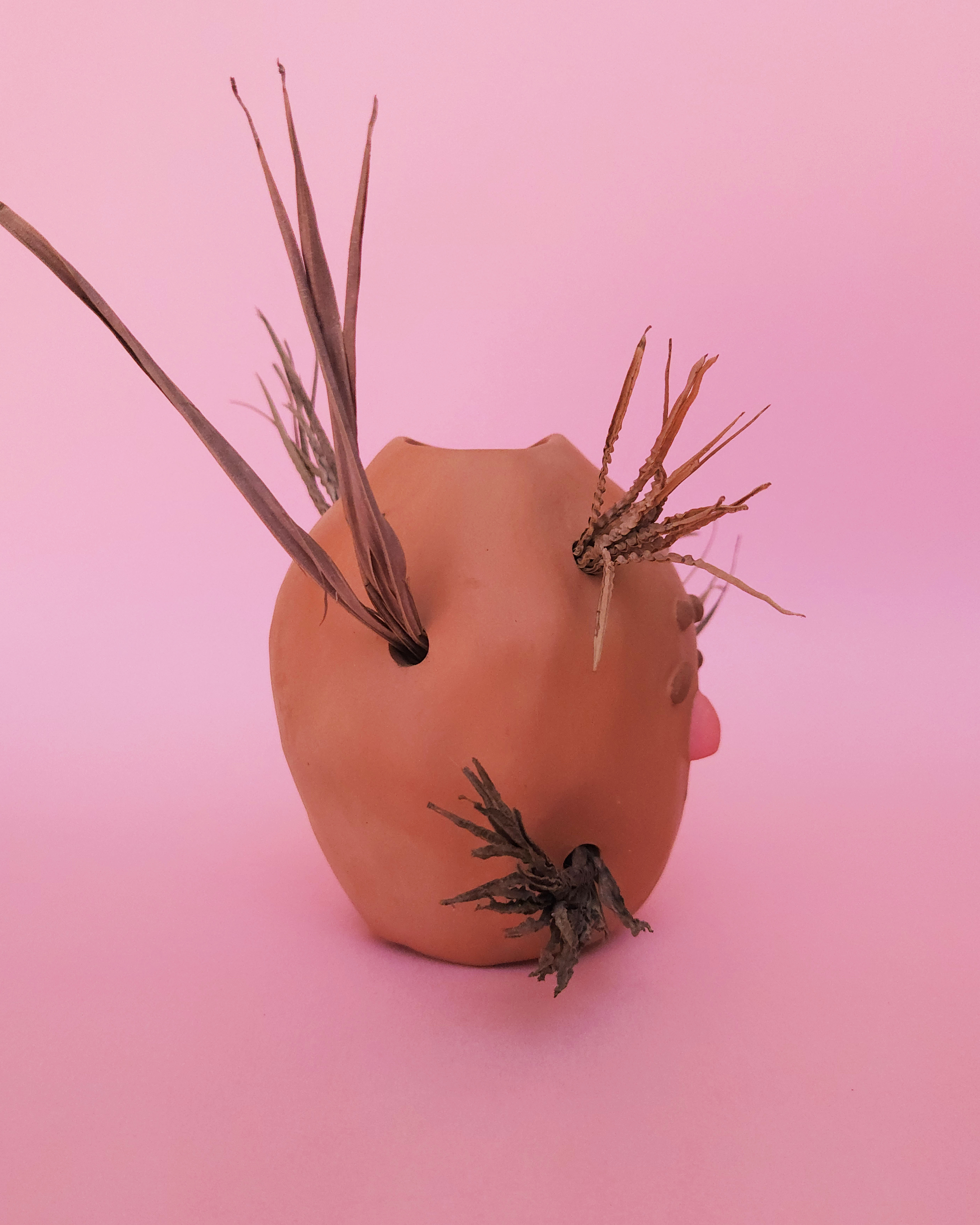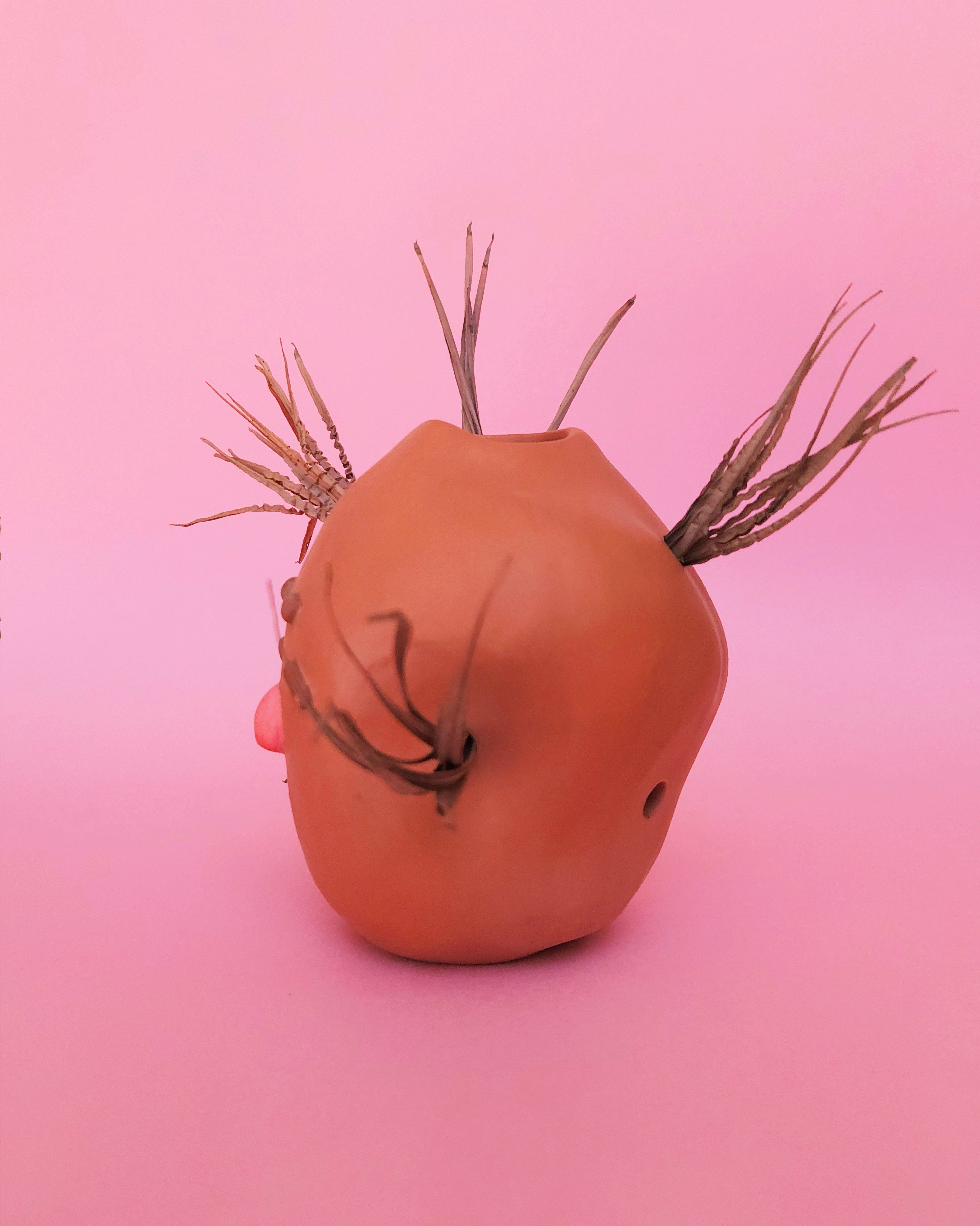 MAPU Handmade ceramic sculpture. Burnished red clay (low-fire) with underglaze. One-off piece. Size: 11 x 9 x 9 cm / 4.5 x 3.5 x 3.5 in