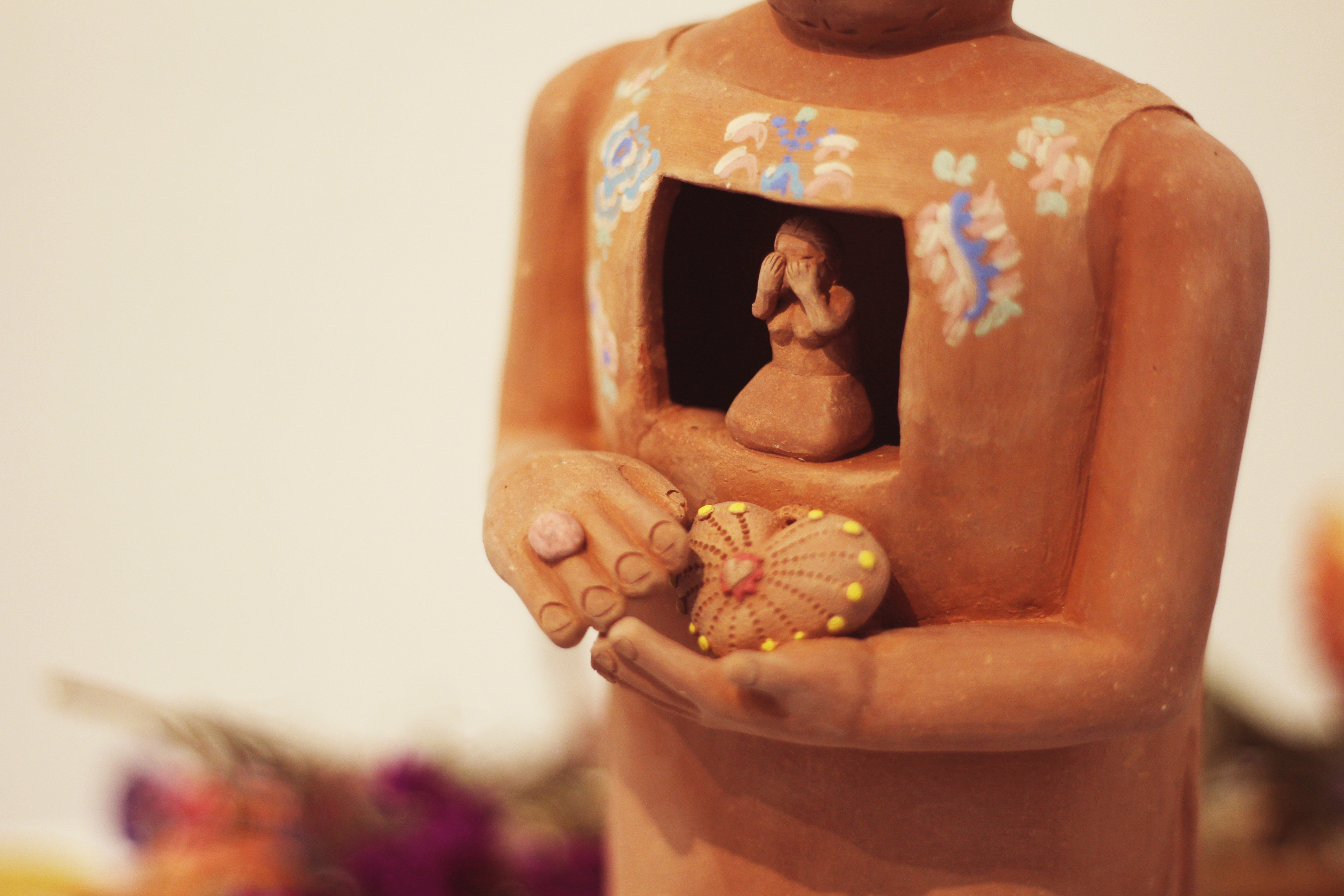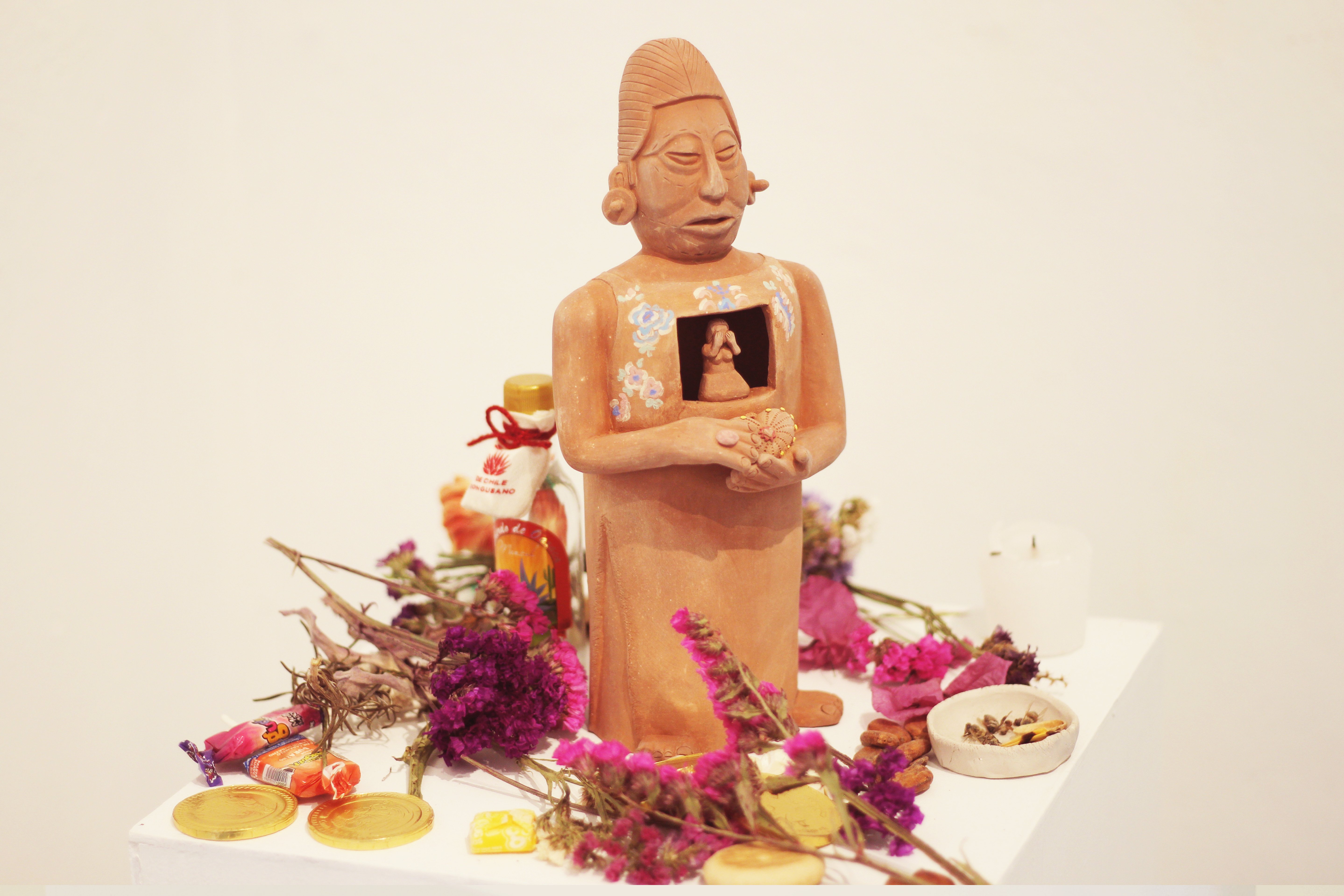 "GODDESS OF BEAUTY STANDARDS" Handmade ceramic sculpture figure. Burnished red clay (low-fire), engobes and beeswax. One-off piece. Size: 26 x 11 x 8 cm / 10.25 x 4.5 x 3.25 in