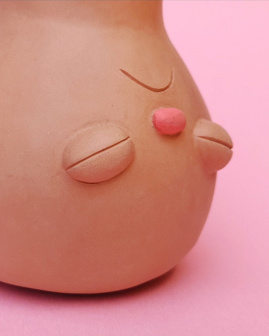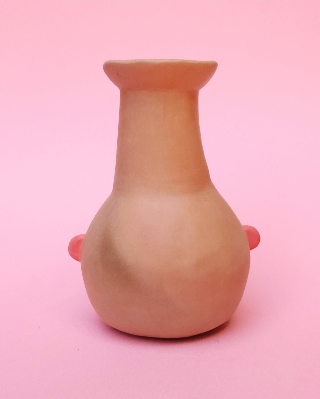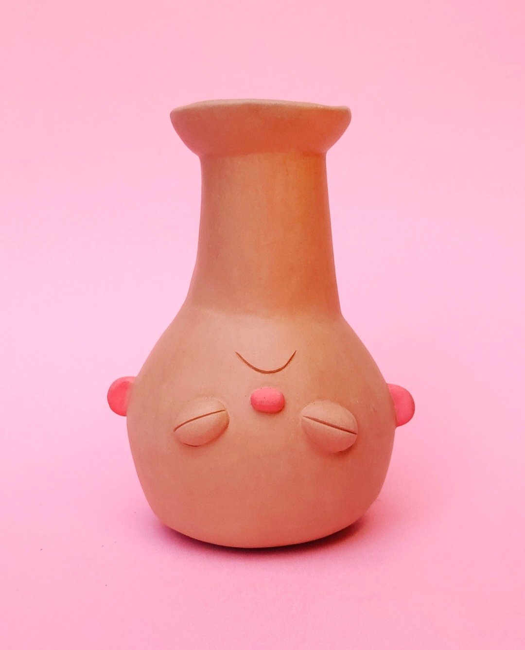 BROKEN FLOWERS Handmade ceramic vase. Burnished red clay (low-fire) with underglaze. One-off piece. Size: 14 x 10 x 8 cm / 5.5 x 4 x 3 in