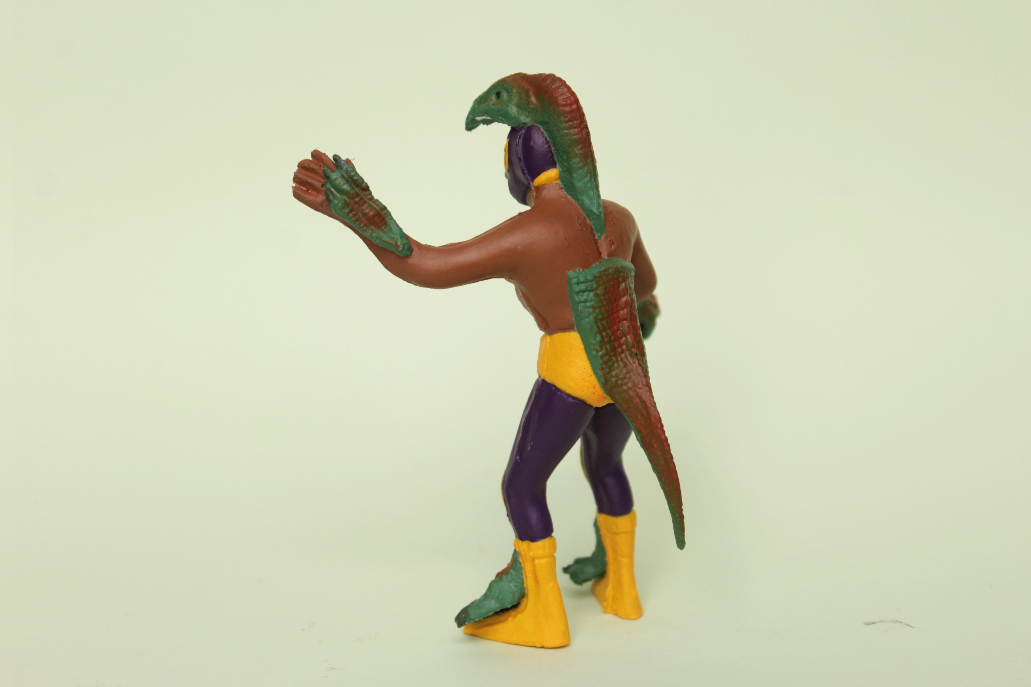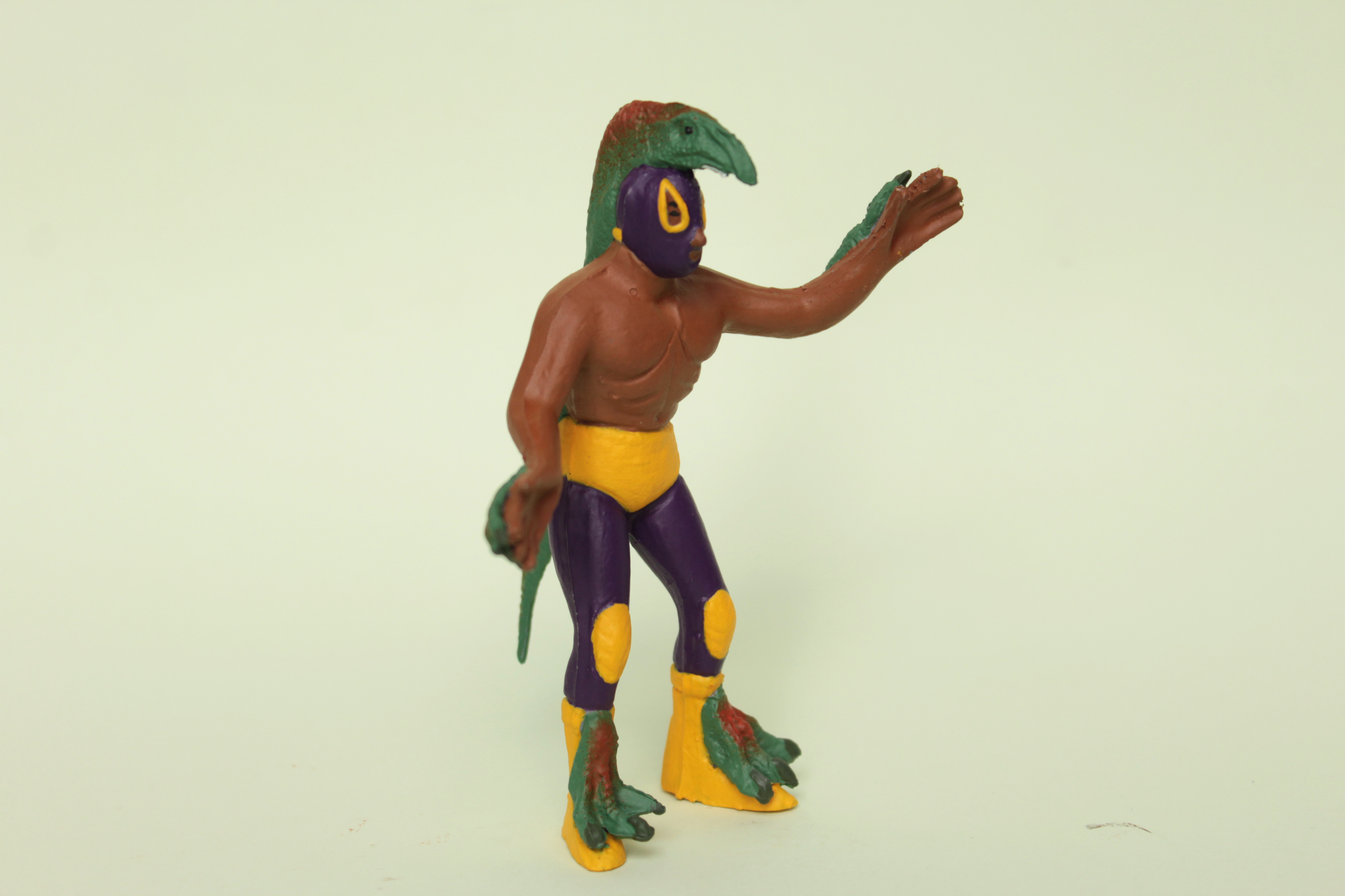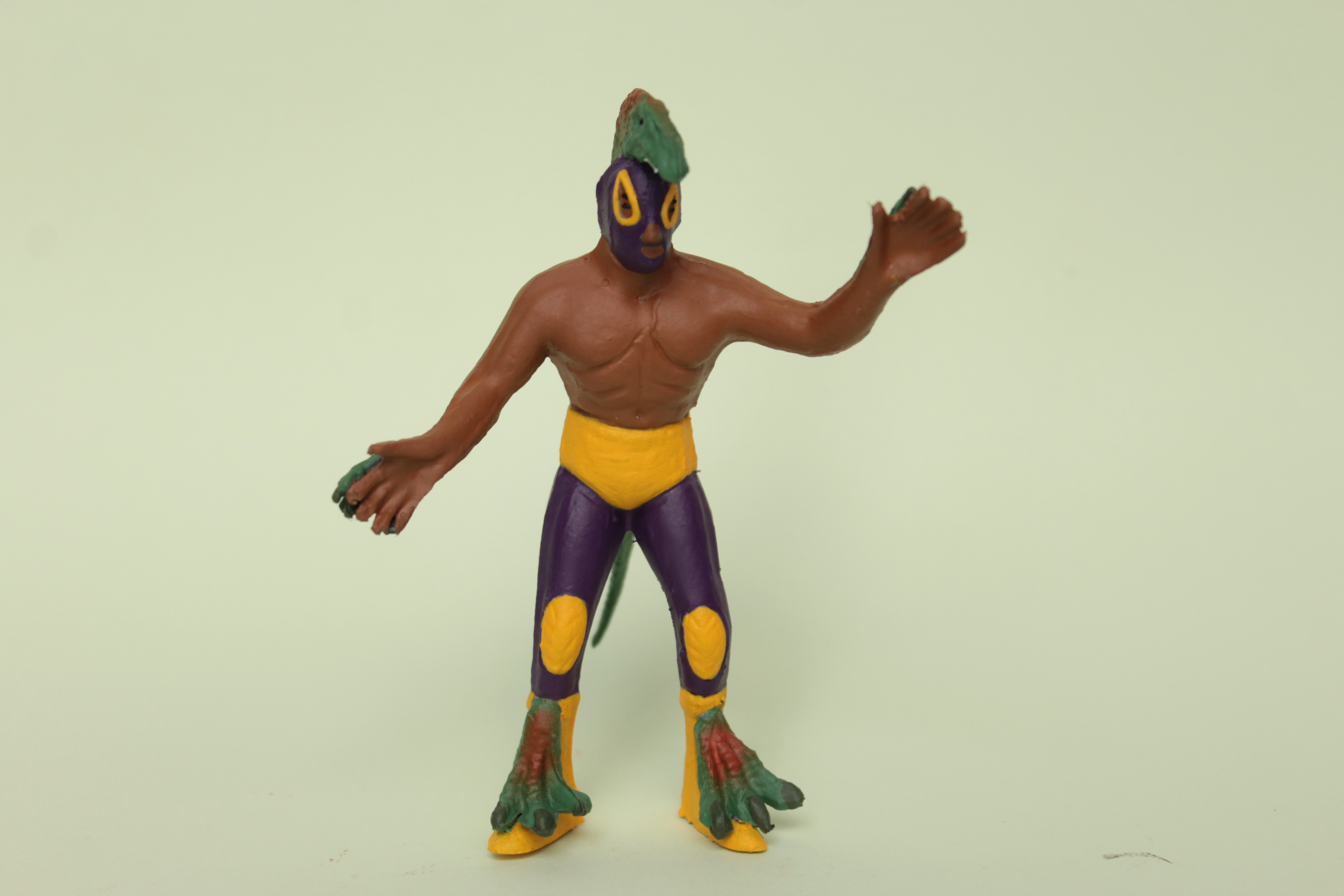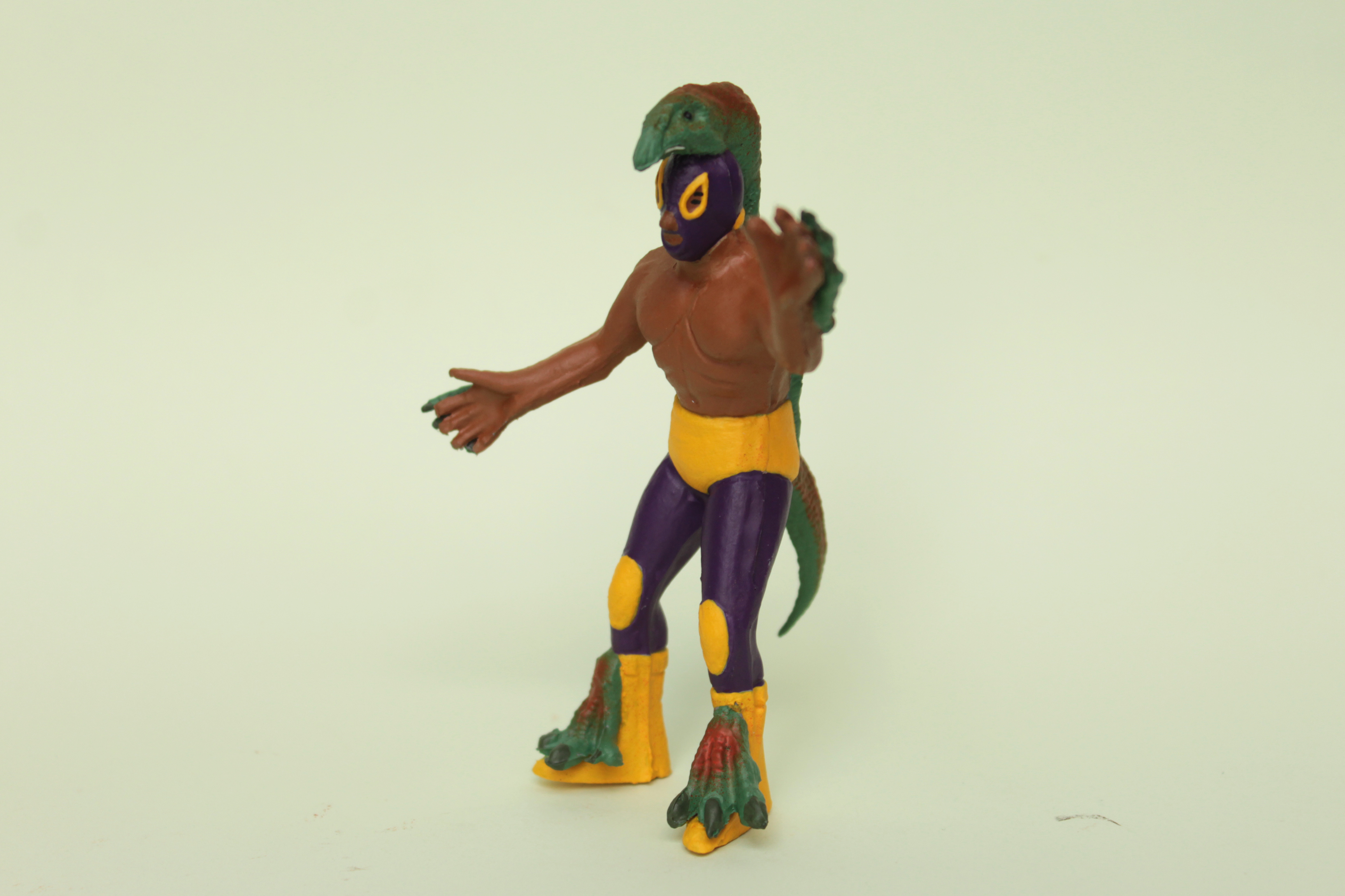 REPTILE WARRIOR Handmade plastic toy. Painted with acrylic paint with protective finishing. One-off piece. Signed and numbered. Poly-bagged with cardboard Size: 11 x 7 x 4 cm / 4.5 x 2.75 x 1.5 in